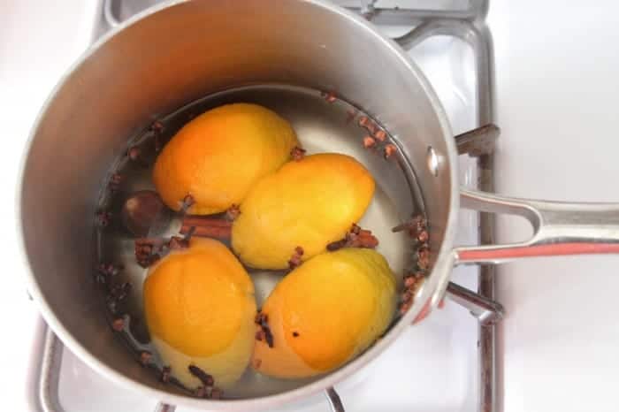 I take a large stock pot, fill it w/those ingredients, and a bit of essential oils and let it simmer all day long. Not only does it make the house smell good, it adds humidity during the winter, which makes the house warmer and more comfortable. Occasionally, I will give it a stir and add boiling water as needed. I also use a crockpot the same way, but I can get more humidity into the air with the stockpot.